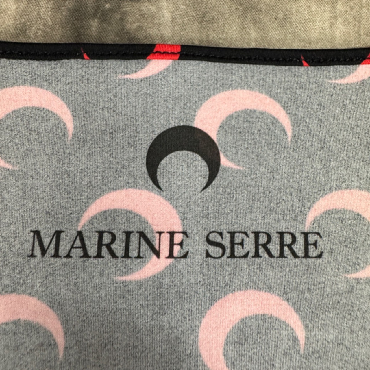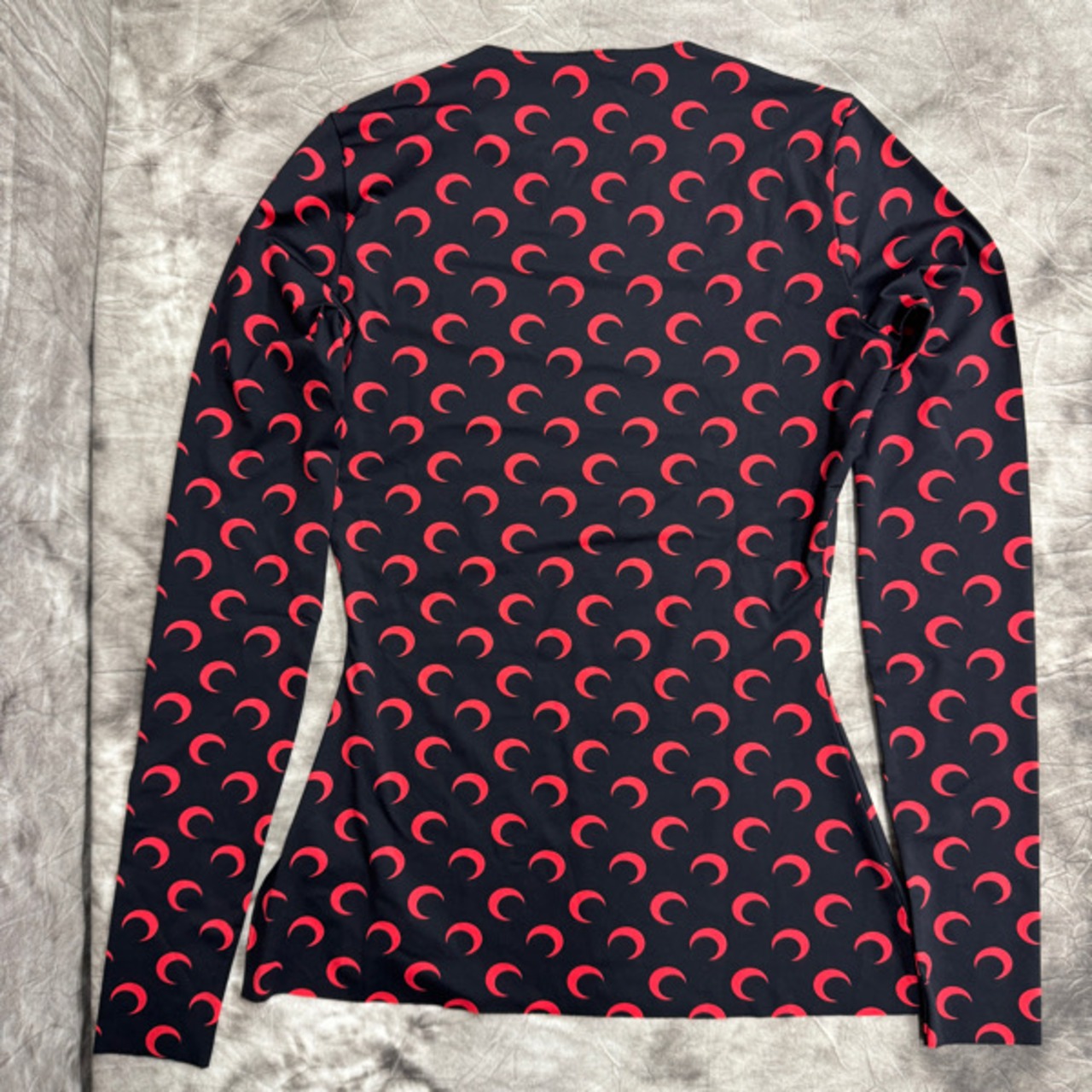 【未使用】Marine serre/マリーンセル MOON PRINTED JERSEY SECOND SKIN CREWNECK TOP BLACK&RED/スキン クルーネック トップ/長袖/XS
