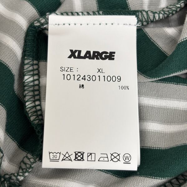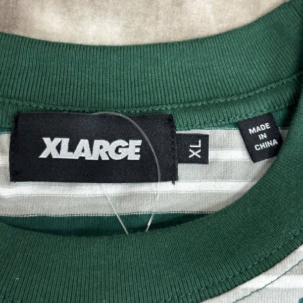 【未使用】XLARGE/エクストララージ STRIPED S/S TEE/ストライプ 半袖Tシャツ/グリーン/101243011009/XL