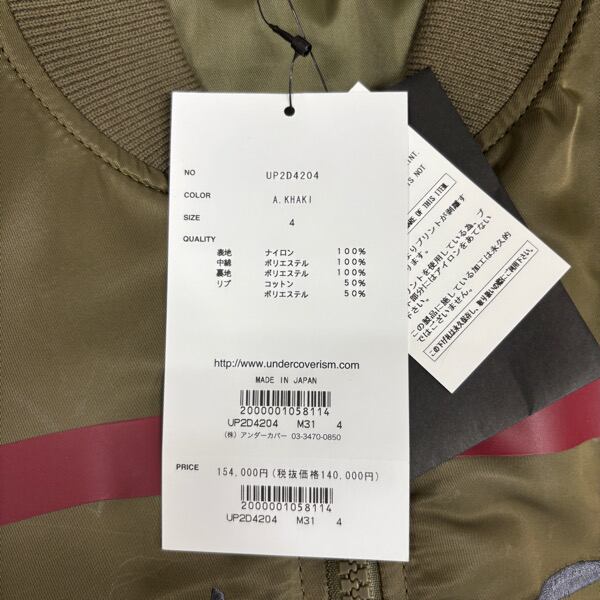 【未使用】UNDERCOVER/アンダーカバー【24AW】NyツイルワイヤーチェッカーMA-1 ブルゾンジャケット/UP2D4204/カーキ/4