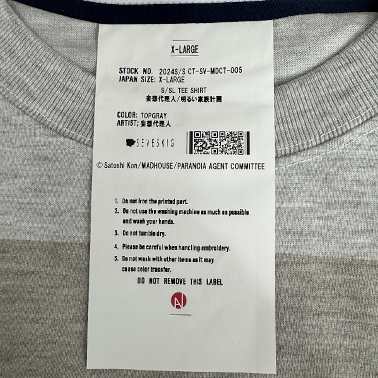 【未使用】SEVESKIG/セヴシグ【24AW】妄想代理人/明るい家族計画 半袖Tシャツ/グレー/CT-SV-MDCT-005/XL