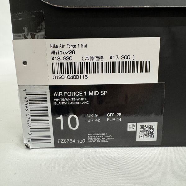 【未使用】Supreme×NIKE/シュプリーム×ナイキ AIR FORCE 1 MID SP/エアフォース1 ミッド ホワイト FZ8784-100/28.0