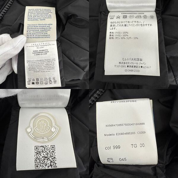 MONCLER/モンクレール MIRIEL/ミリエル ダウンジャケット C20934685205 C0059/ブラック/00