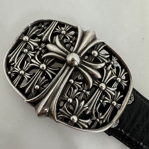 CHROME HEARTS/クロムハーツ セメタリークロス バックル/1.5 レザーベルトストラップ ブラック
