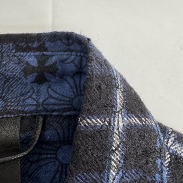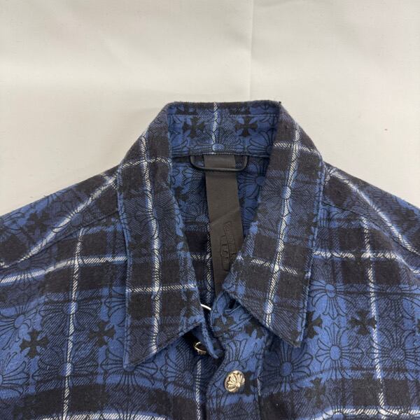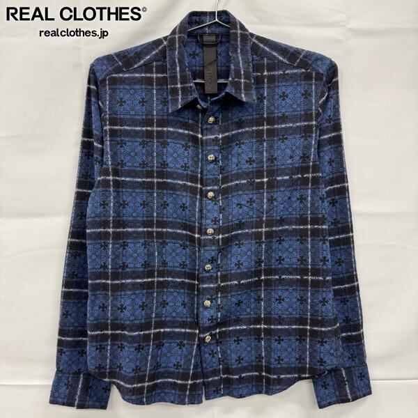 CHROME HEARTS/クロムハーツ Loose Ends Cross Leather Patch Check Shirt/ルーズエンド クロスパッチ クロス総柄シャツ/S
