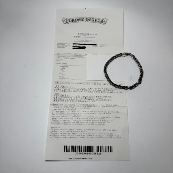 【レシート付き】CHROME HEARTS/クロムハーツ PAPER CHAIN/ペーパーチェーンブレスレット 7インチ