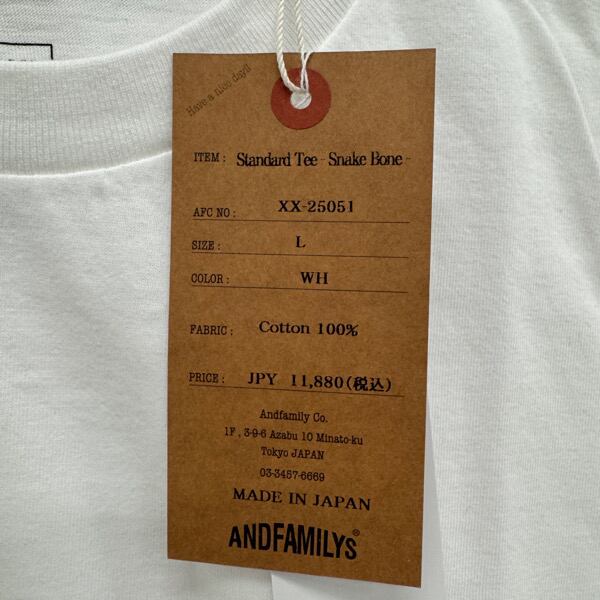 【未使用】ANDFAMILYS/アンドファミリーズ【25SS】Snake Bone Standard Tee/半袖 Tシャツ XX-25051/ホワイト/L | REALCLOTHES/リアルクローズ
