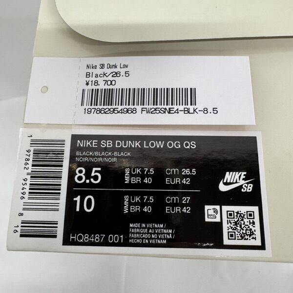 【未使用】Supreme×NIKE/シュプリーム×ナイキ【25AW】SB DUNK LOW OG QS ダンク HQ8487-001/26.5