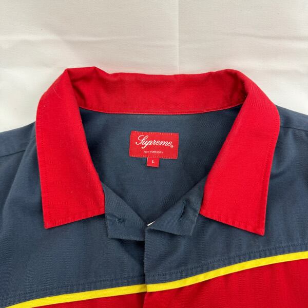 Supreme/シュプリーム【18SS】Color Blocked Work Shirt/ワーク 半袖シャツ/ネイビー/レッド/L