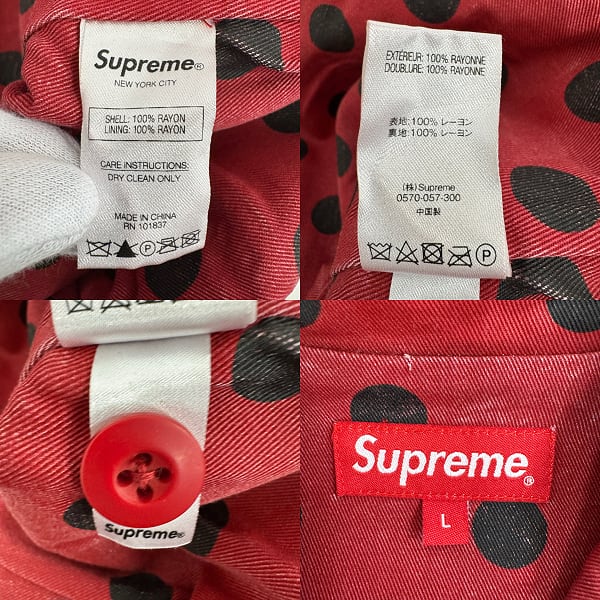 Supreme/シュプリーム【18SS】Polka Dots Rayon Work Jacket/ポルカドッツ レーヨン ワーク ジャケット/レッド/L