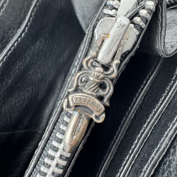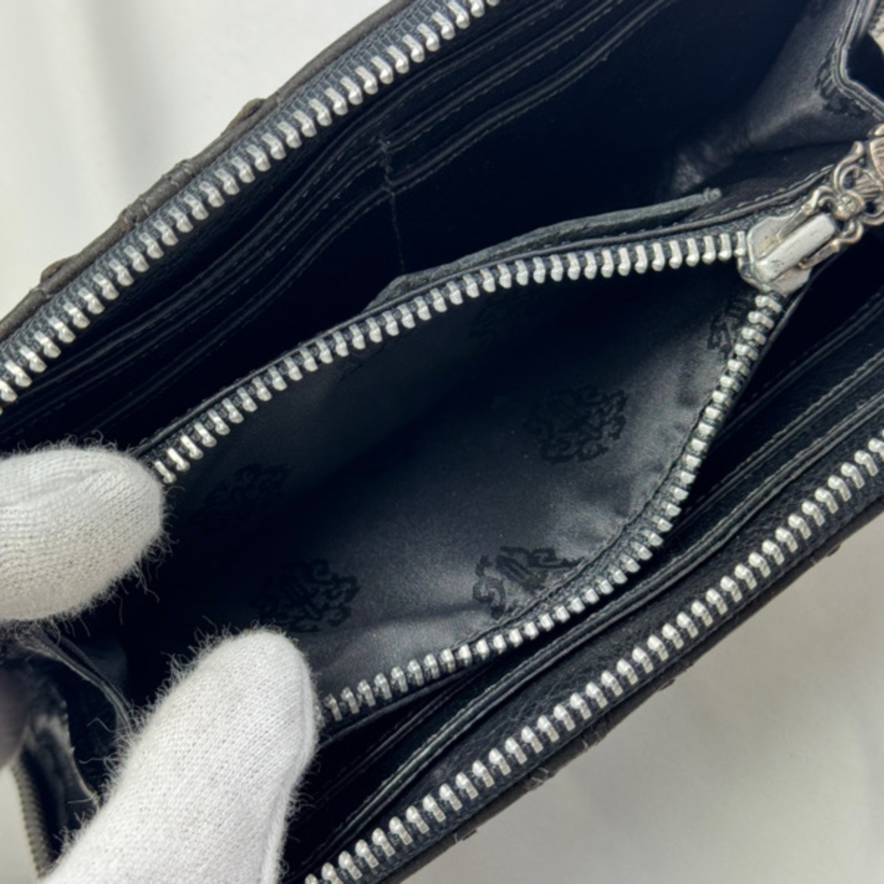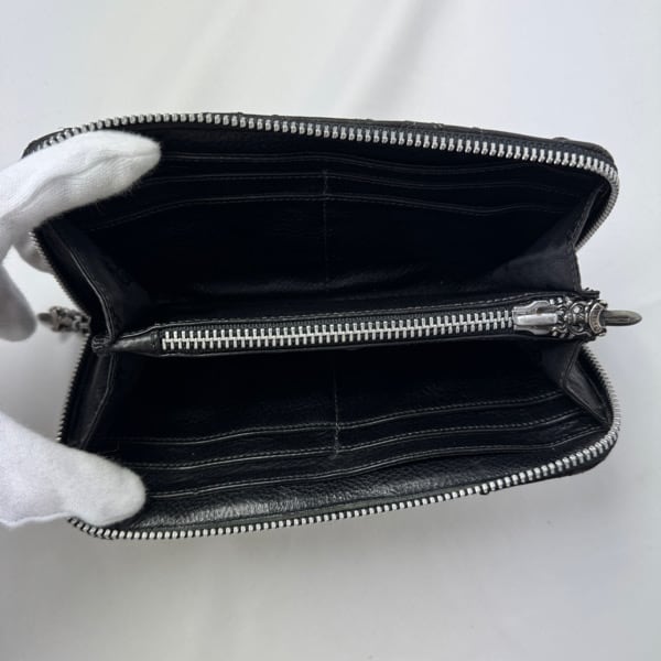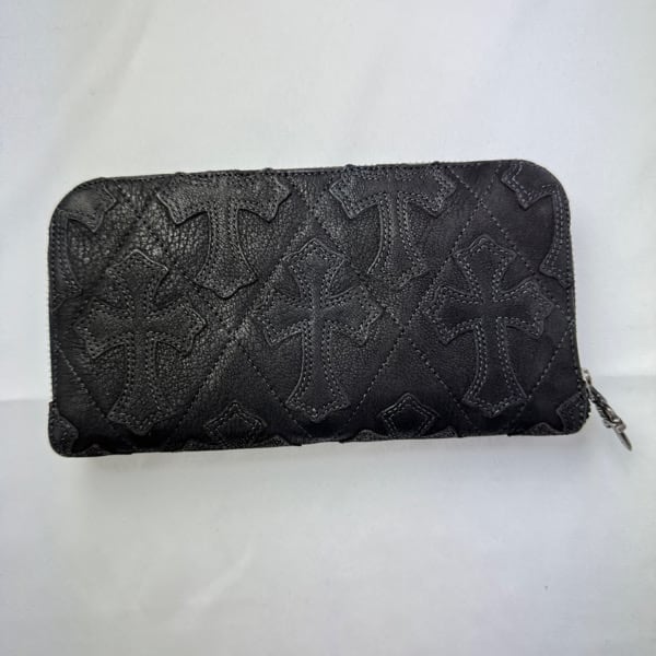 CHROME HEARTS/クロムハーツ REC F ZIP CEME QWLT/キルテッドセメタリークロス レザーウォレット/長財布