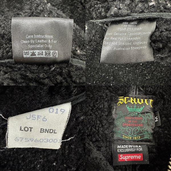 Supreme×Schott/シュプリーム×ショット【23AW】Shearling Collar Bomber Jacket/ボンバージャケット/ブラック/M