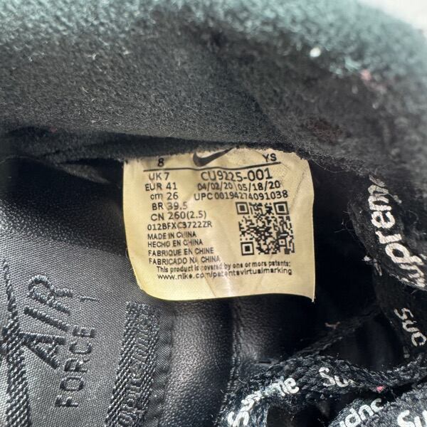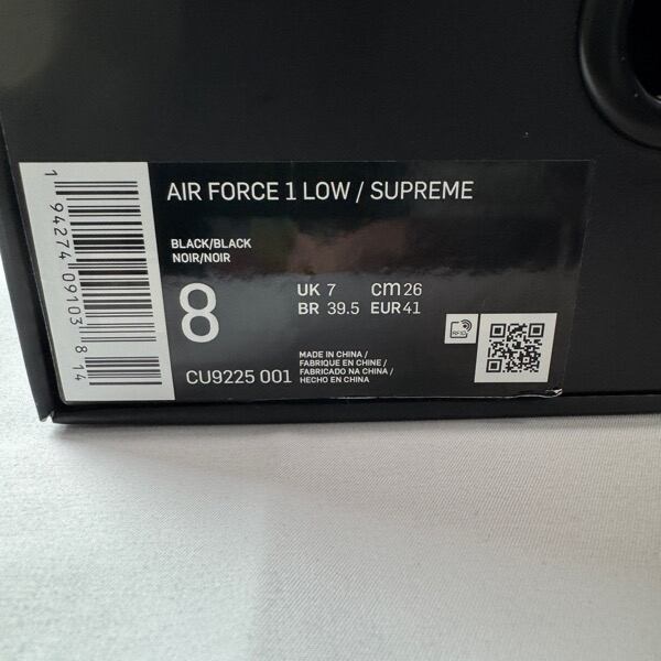 Supreme×NIKE/シュプリーム×ナイキ AIR FORCE 1LOW/エアフォース1 ロー ブラック CU9225-001/26.0