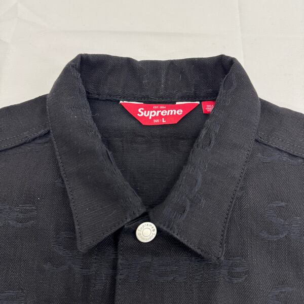 Supreme/シュプリーム【25AW】Jacquard Logos Denim Trucker/ジャガード ロゴ デニム トラッカー ジャケット/ブラック/L