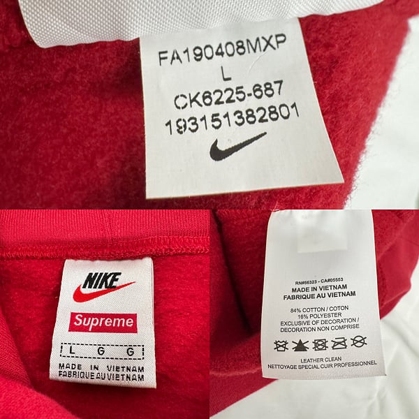 Supreme×NIKE/シュプリーム×ナイキ【19AW】Leather Applique Hooded Sweatshirt/レザー アップリケ フーデッド スウェット パーカー/L
