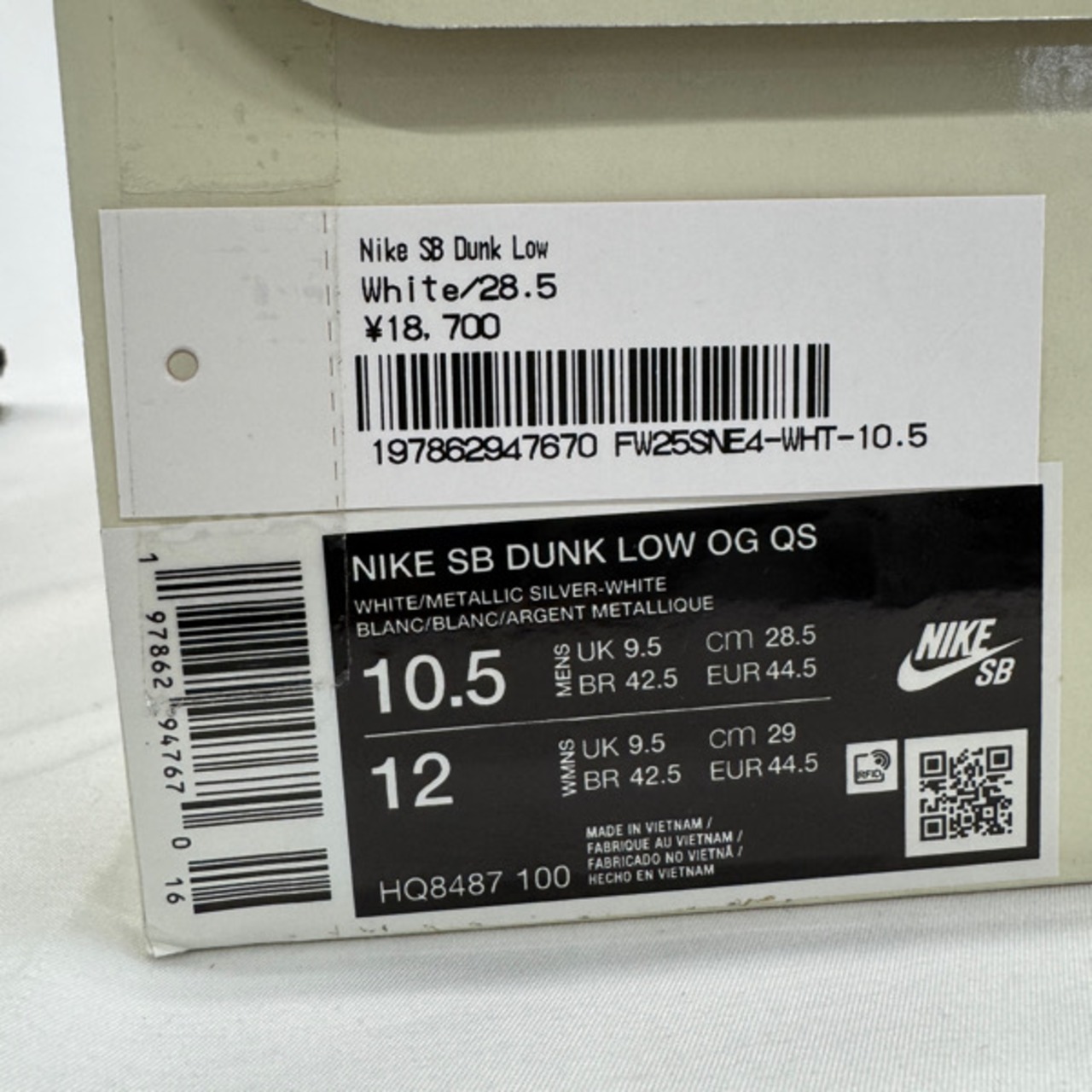 【未使用】Supreme×NIKE/シュプリーム×ナイキ SB Dunk Low White/Metallic Silver/ダンクロー HQ8487-100/28.5