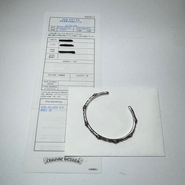 【インボイス原本】CHROME HEARTS/クロムハーツ SBT BANGLE/SBTバングル/Lサイズ